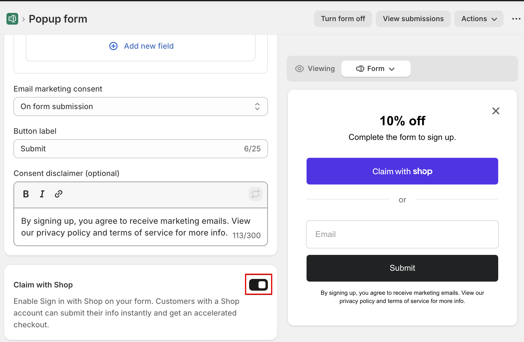 - Works on more forms - Sign in with Shop now supports forms that don't offer a discount, and on storefronts that do not have Shop Pay enabled.